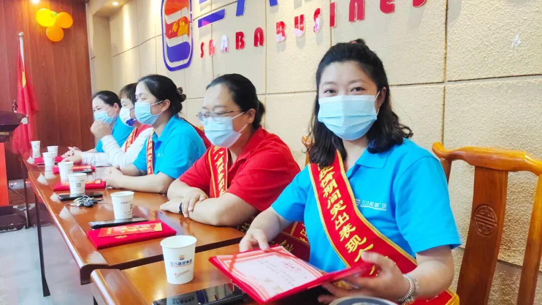 三八商贸集团党支部书记、董事长苗秀兰同志、总经理叶苗苗、商品部总监苗秀皊等企业领导和获奖员工、优秀职工代表共40余人参加表彰大会。